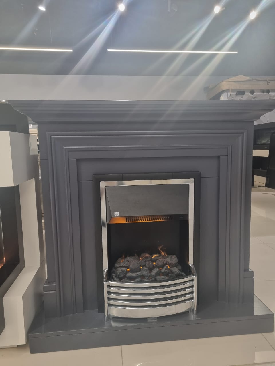 Электрический очаг Dimplex Flagstaff — стильный очаг в блестящем серебристом обрамлении.