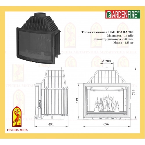 Каминная топка Мета Ardenfire Панорама 700