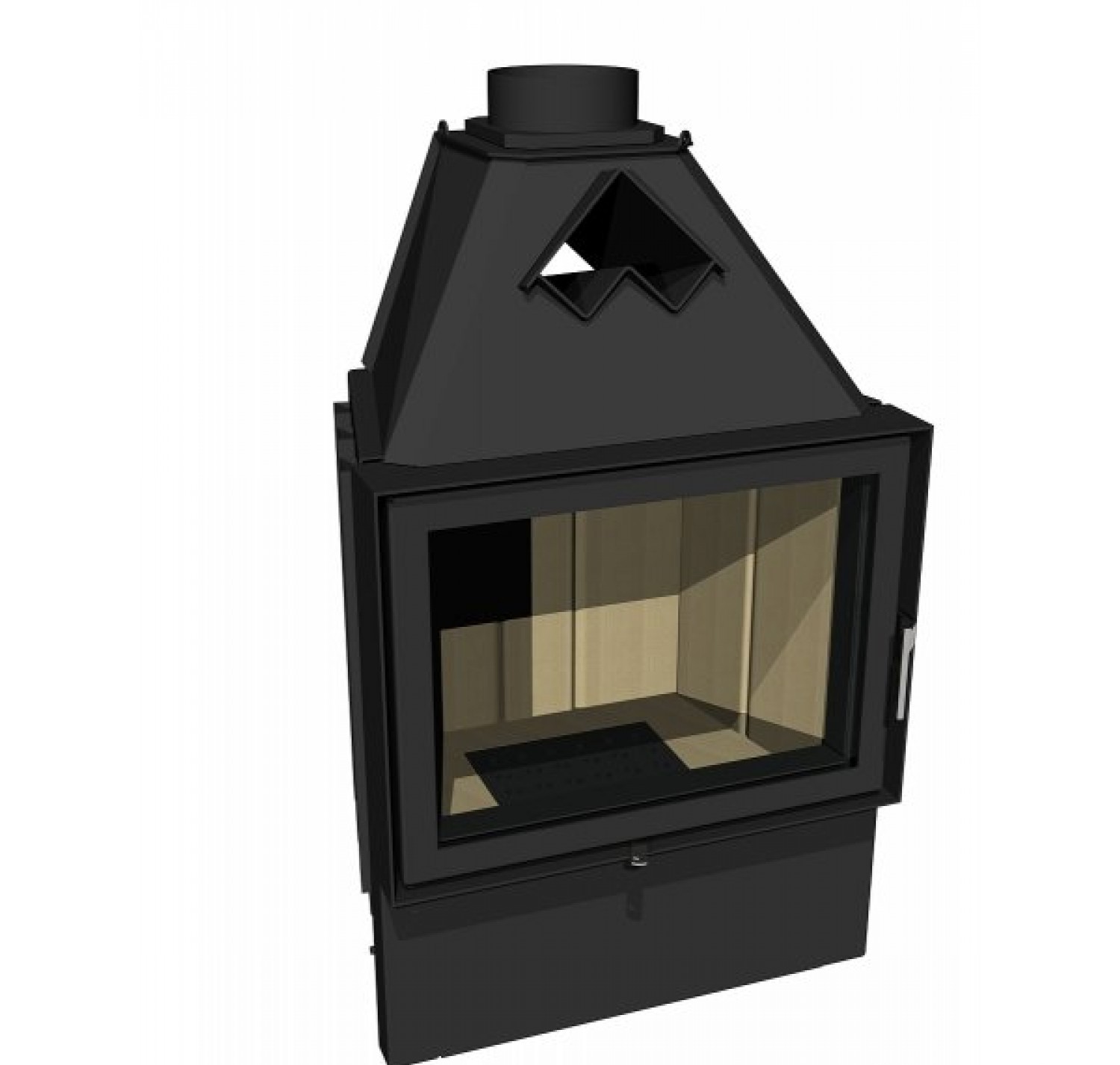 Корпус каминной топки выполнен из жаропрочной стали, колосники и патрубки из чугуна.
